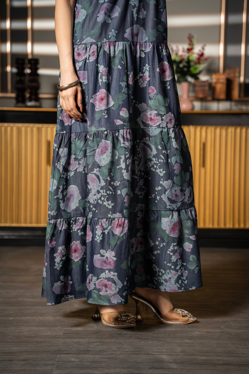Midnight Flora Tier Dress